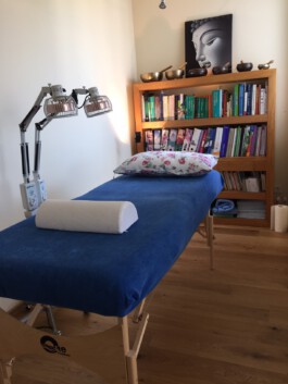 Meine Praxis ist modern und sachgerecht ausgestattet. Wie Sie im Folgenden sehen können, ist mein Behandlungsraum hell freundlich und ansprechend eingerichtet. Zur Entspannung während der Behandlung biete ich Ihnen jederzeit auf Wunsch auch gerne Entspannungsmusik.